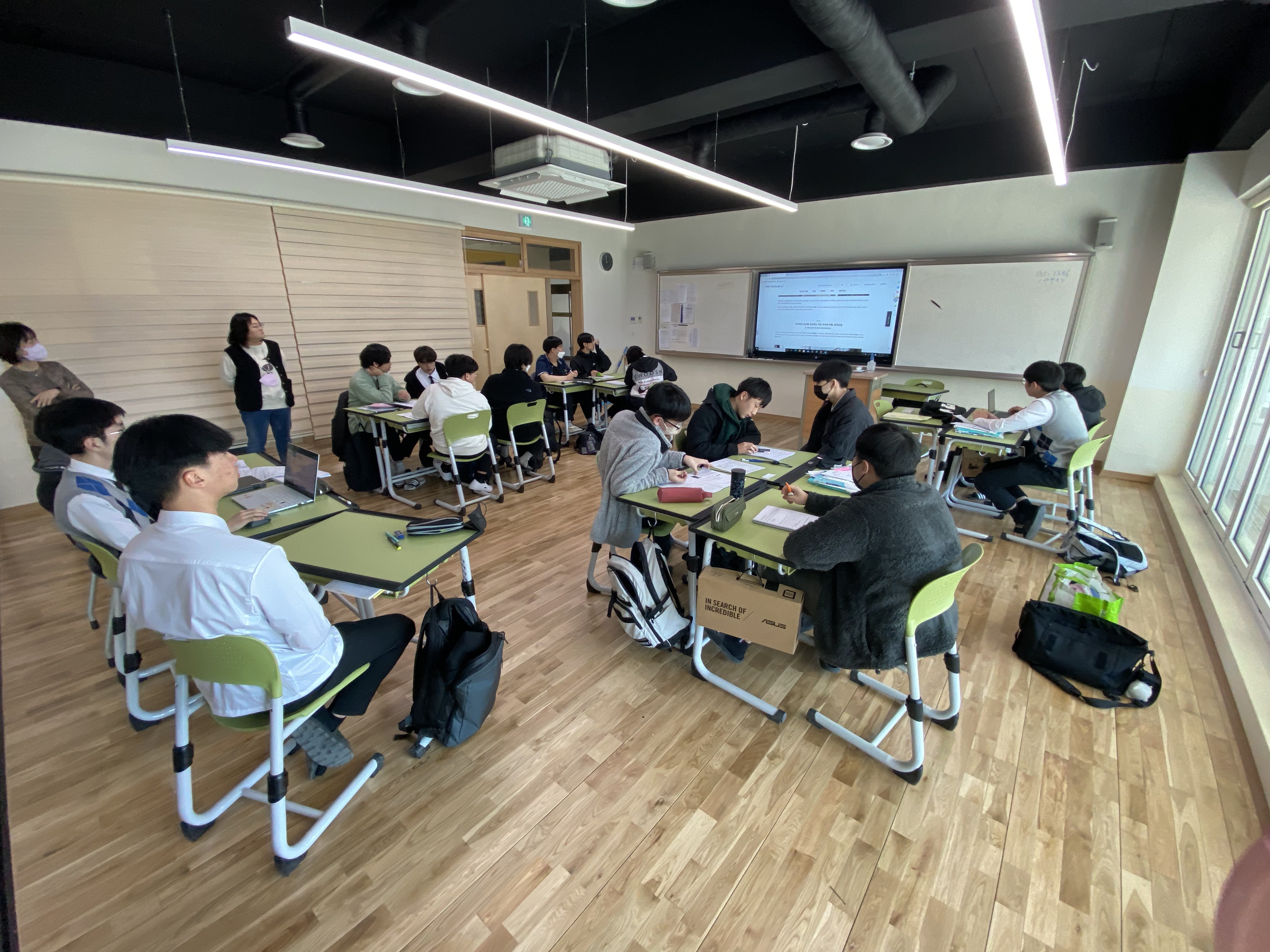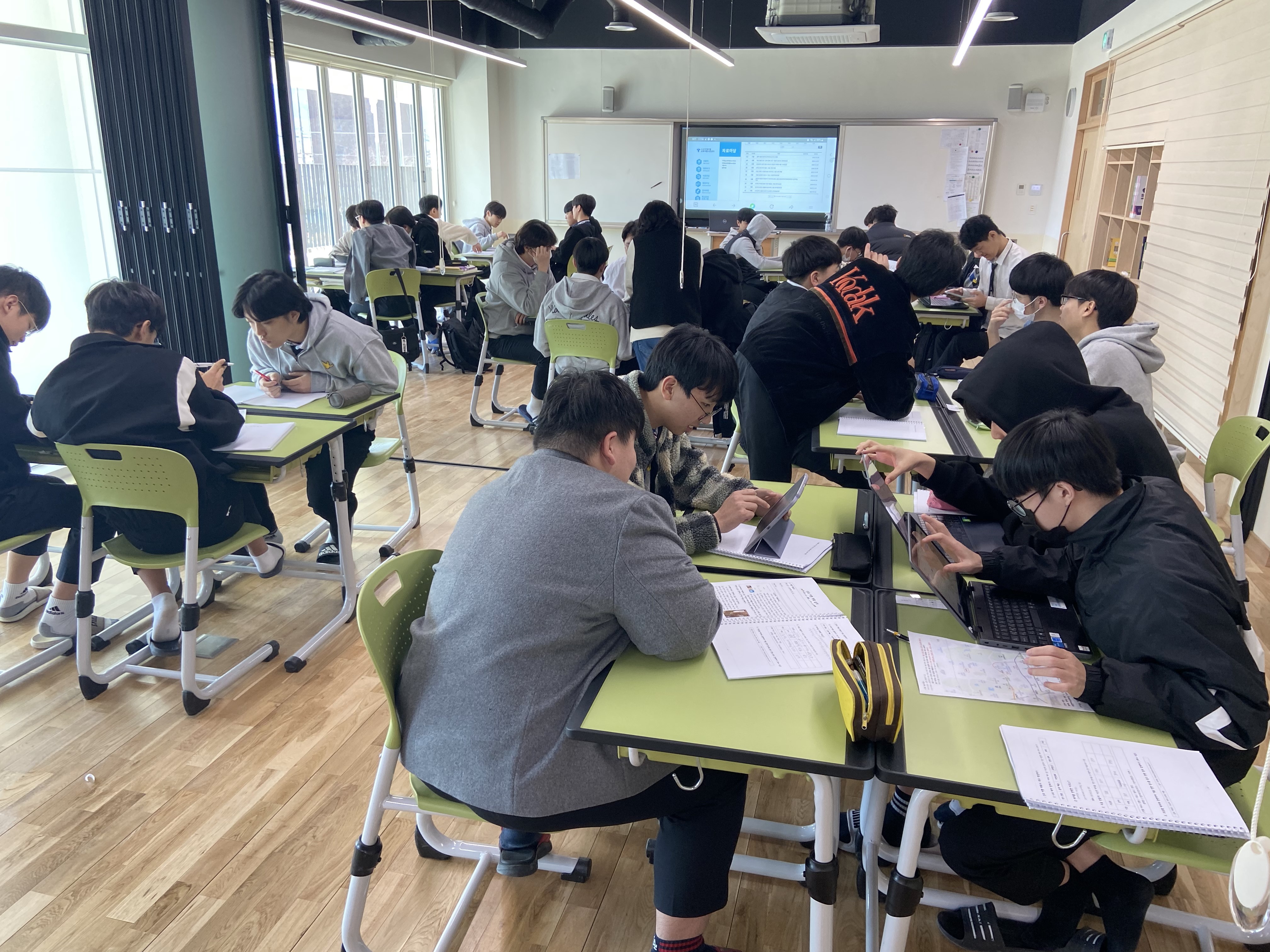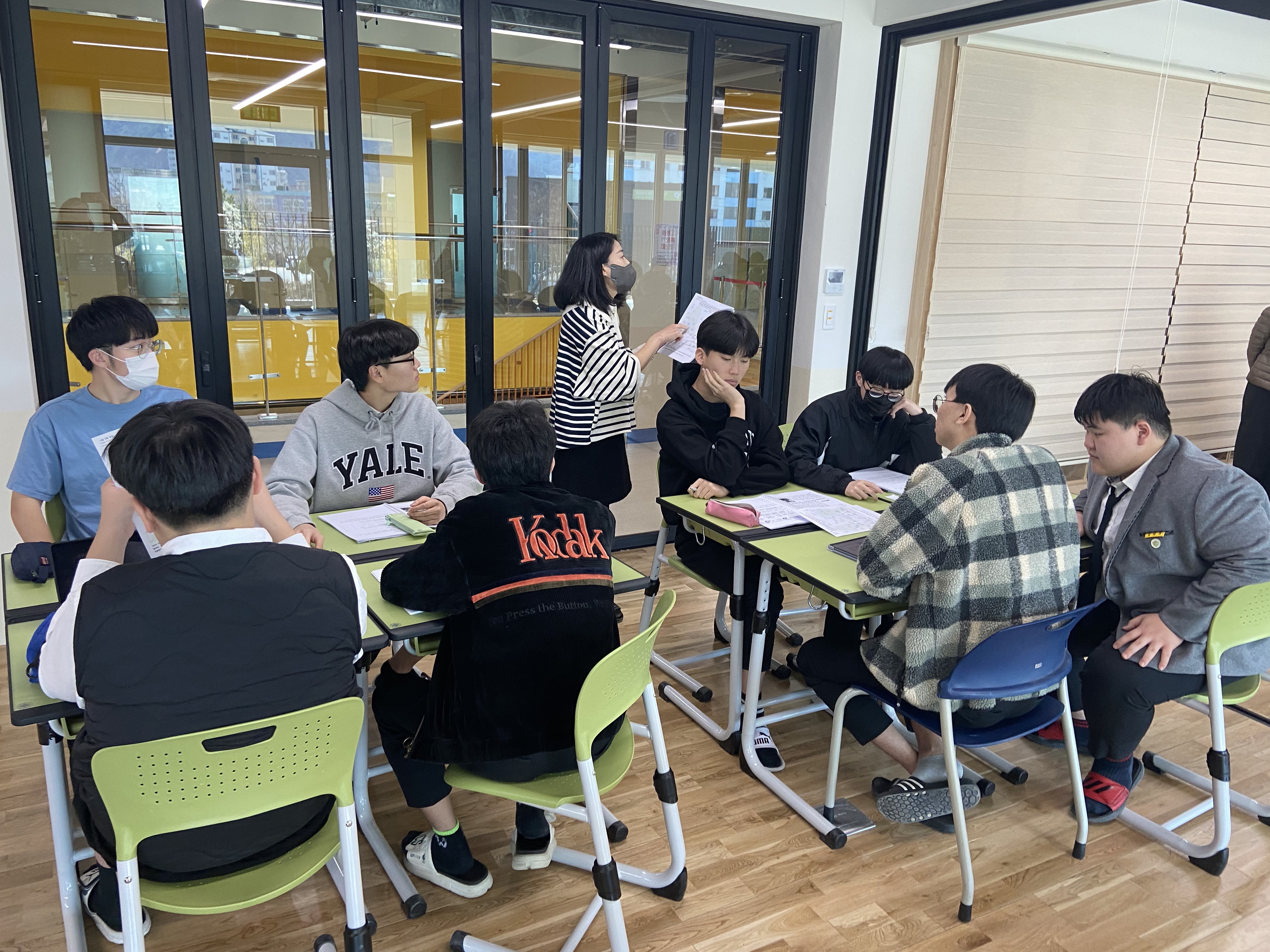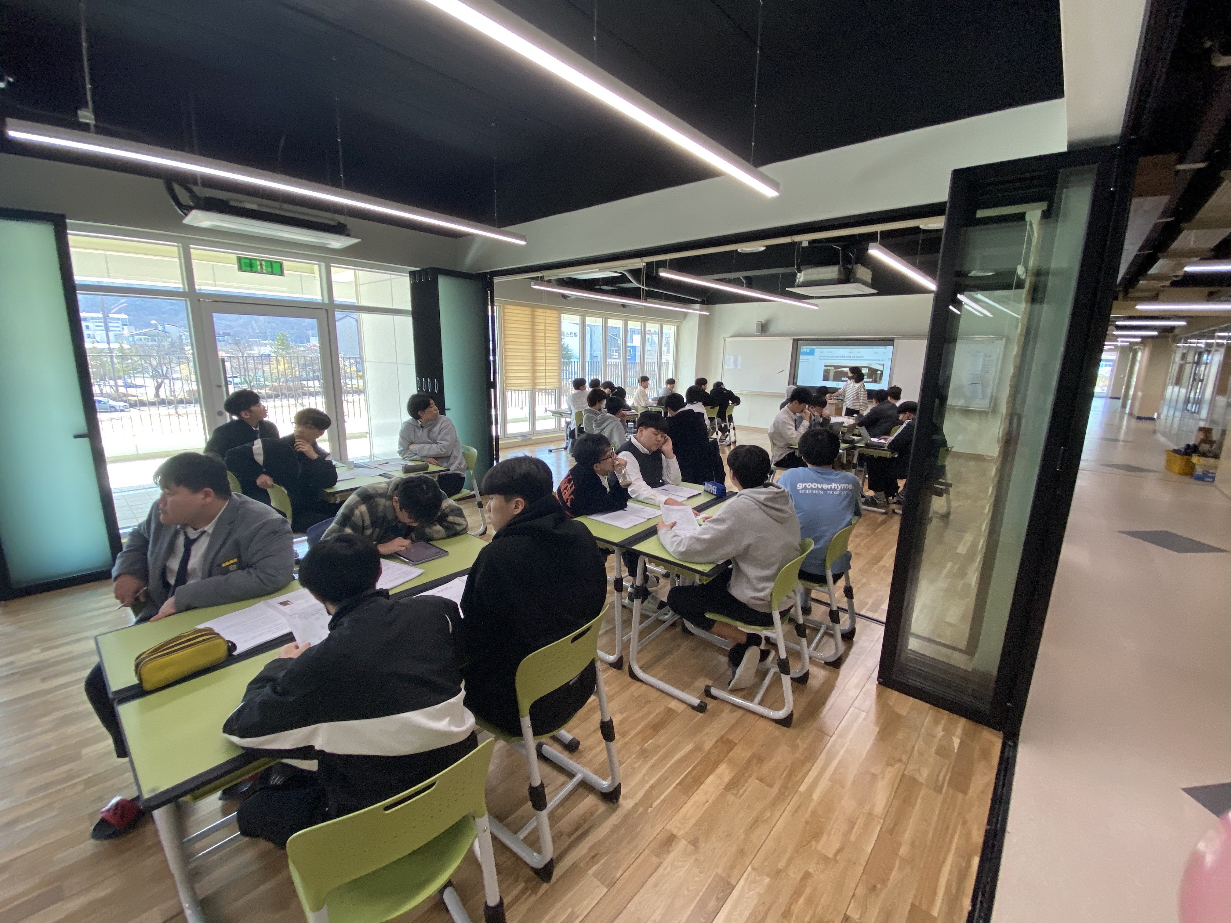 2학년 전체학생을 두 교실과 사이 토론실을 확장하여 전체 진로활동을 하였습니다.