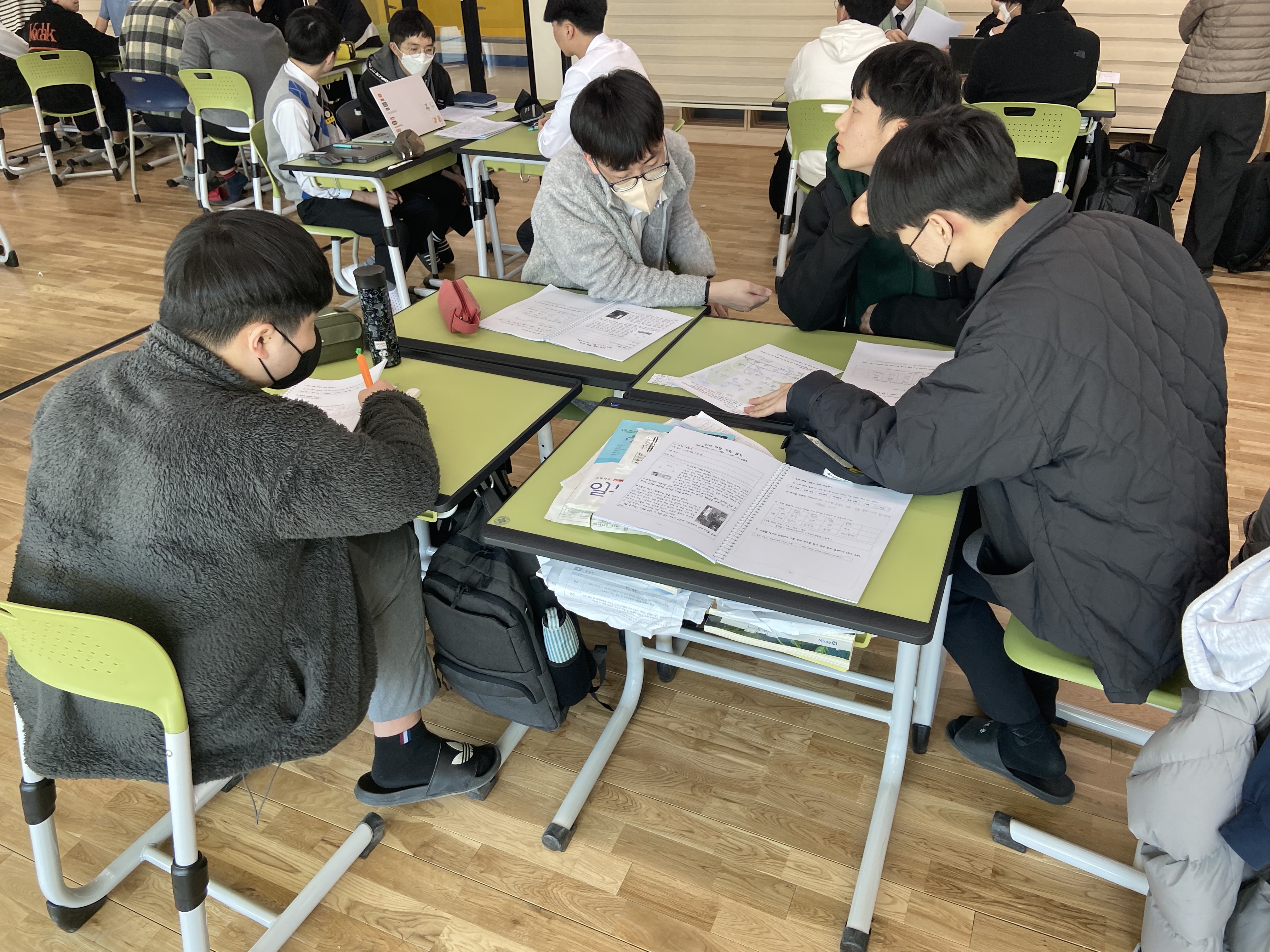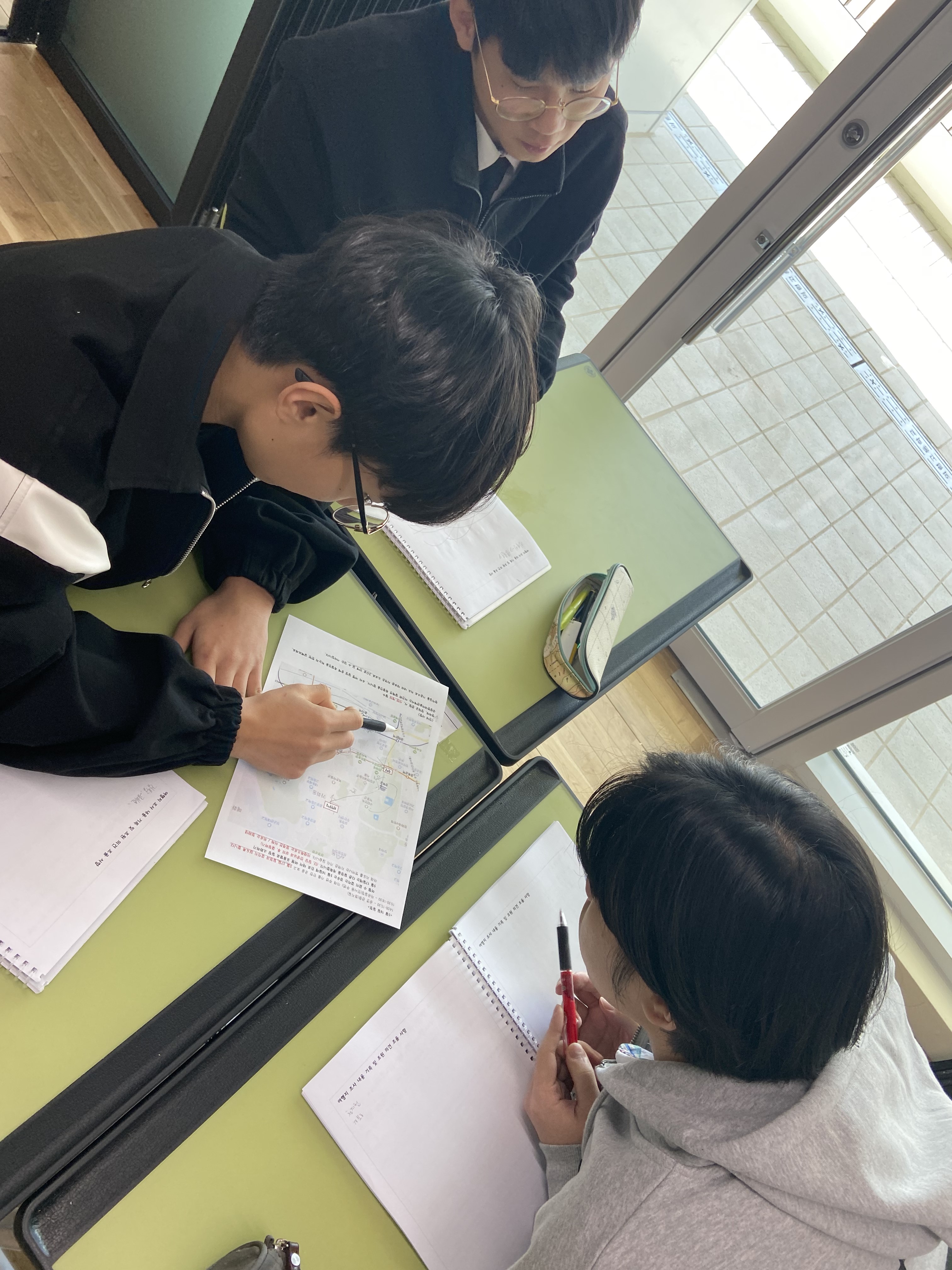 그룹별로 진로여행을 계획해보고 의견을 조율하고 있답니다.
