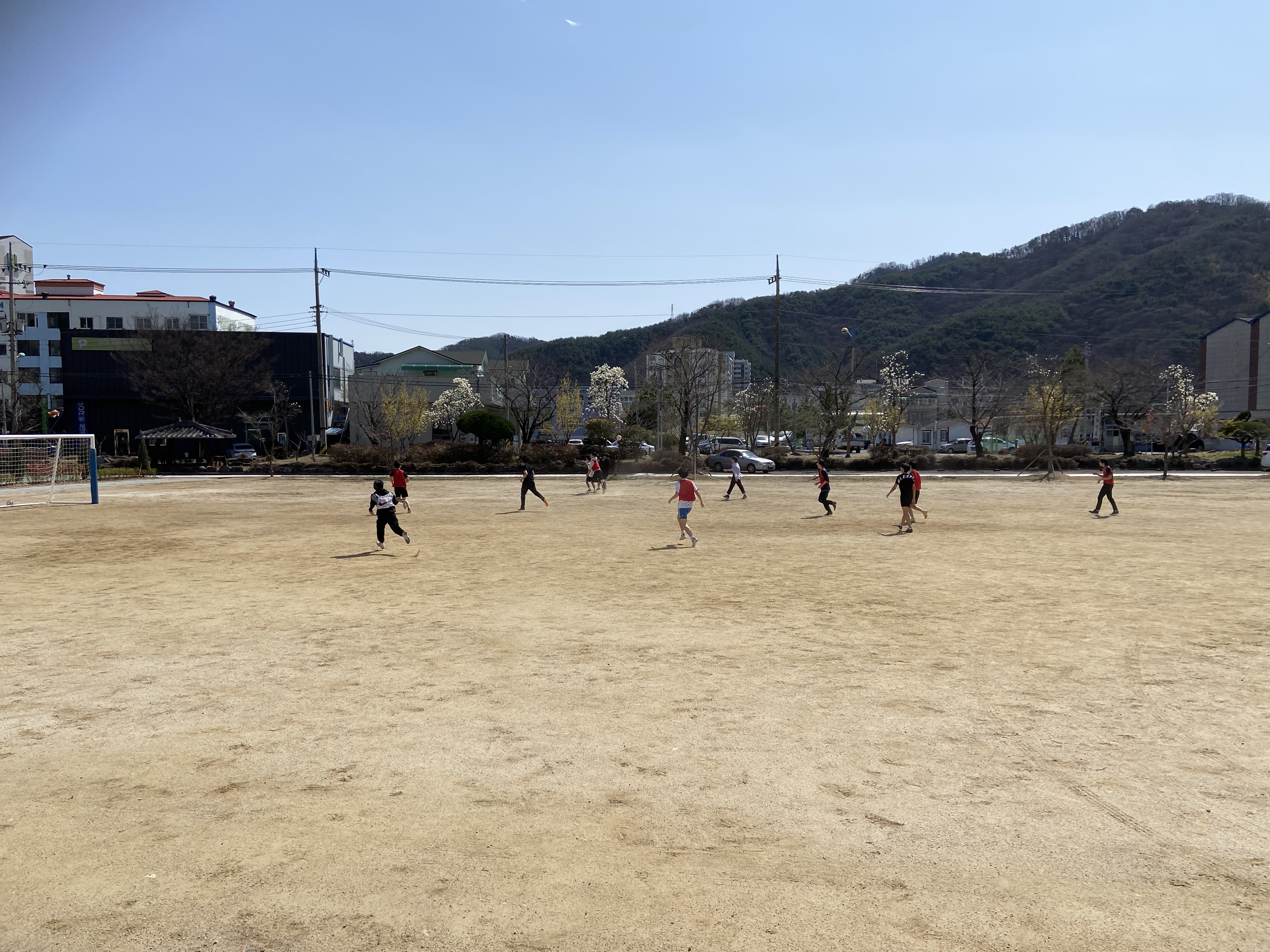 축구하는 모습을 언제든 테라스에서 볼 수 있습니다.