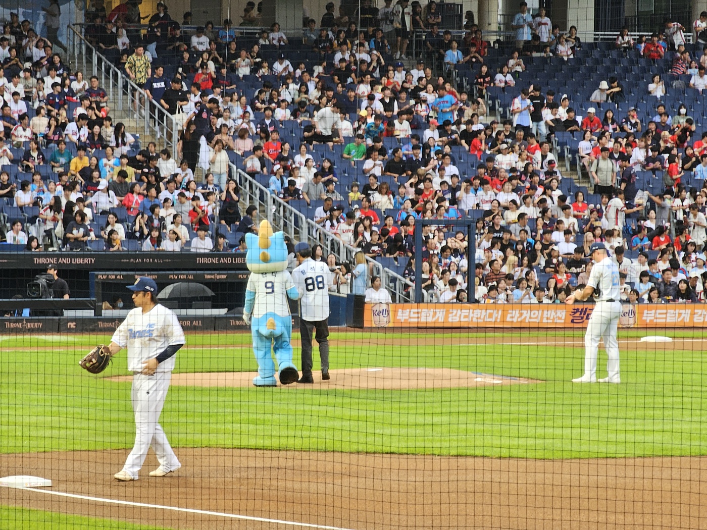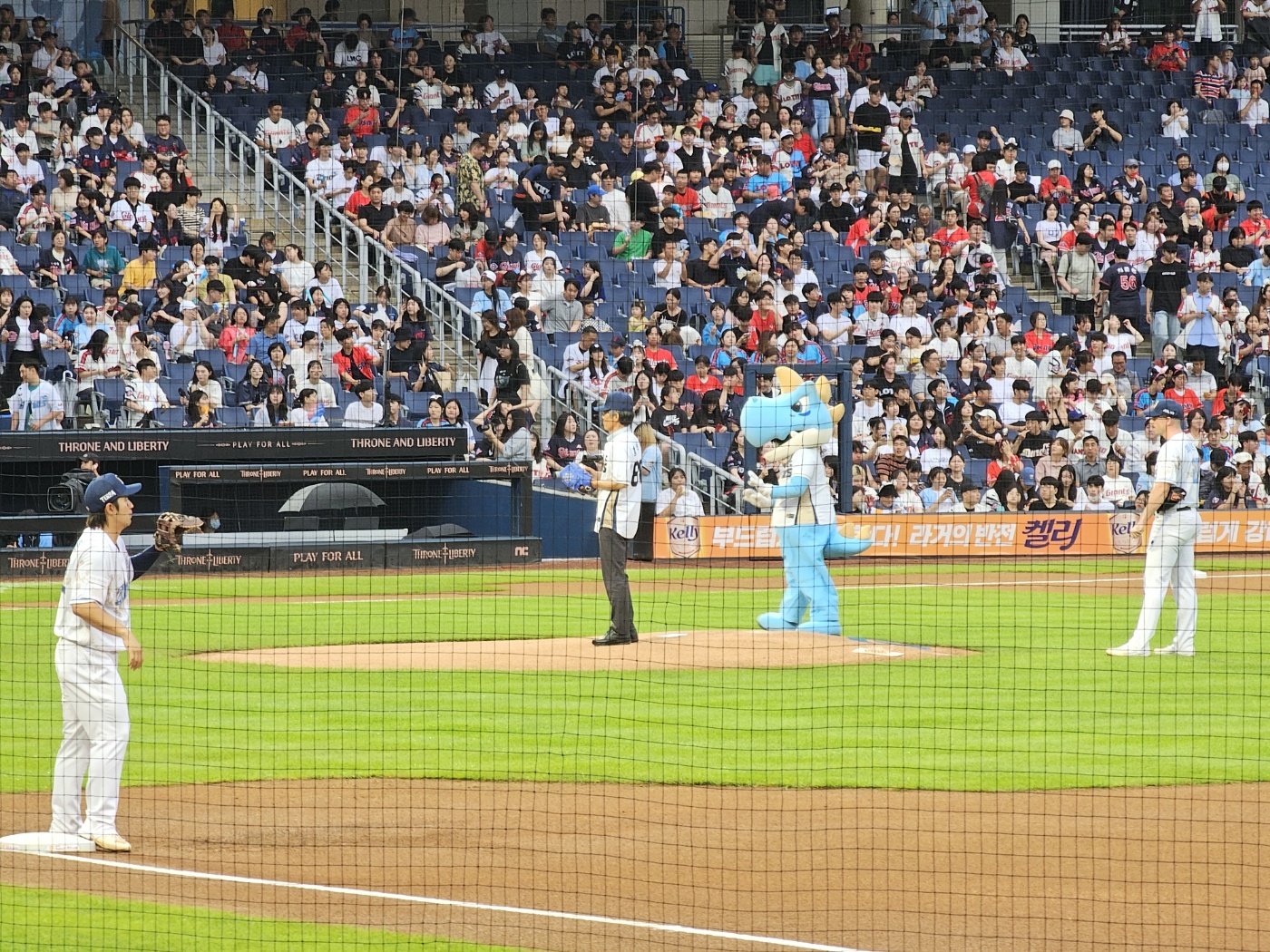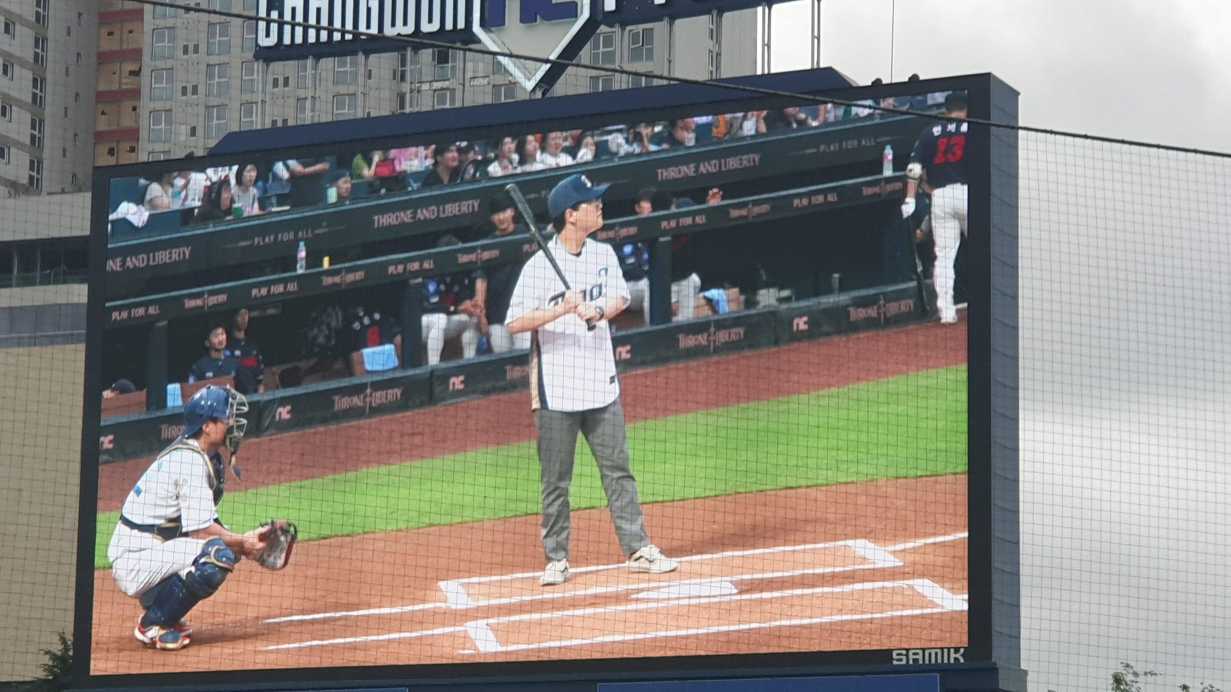 주우재 학생 외 19명의 학생들로 이루어진 의령고 중창단의 애국가 제창 후 황석도 교장선생님의 시구와 최원빈 학생회장의 시타가 있었습니다. 야구장 전광판에 의령고 홍보동영상도 송출하였습니다.