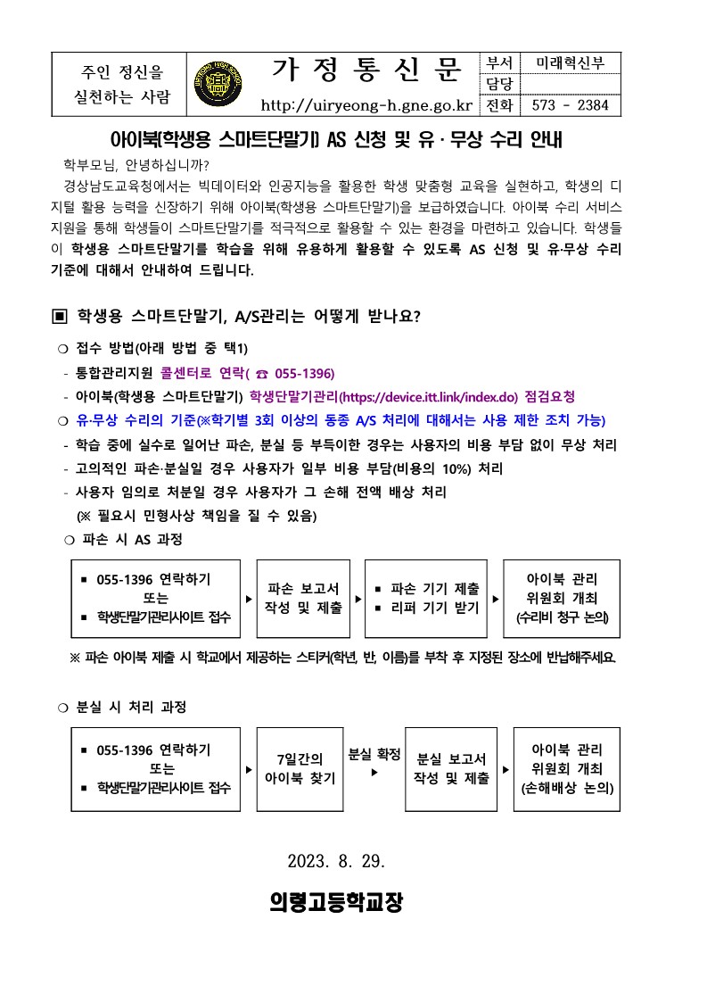 아이북(학생용 스마트만들기) AS 신청 및 유 · 무상 수리 안내
