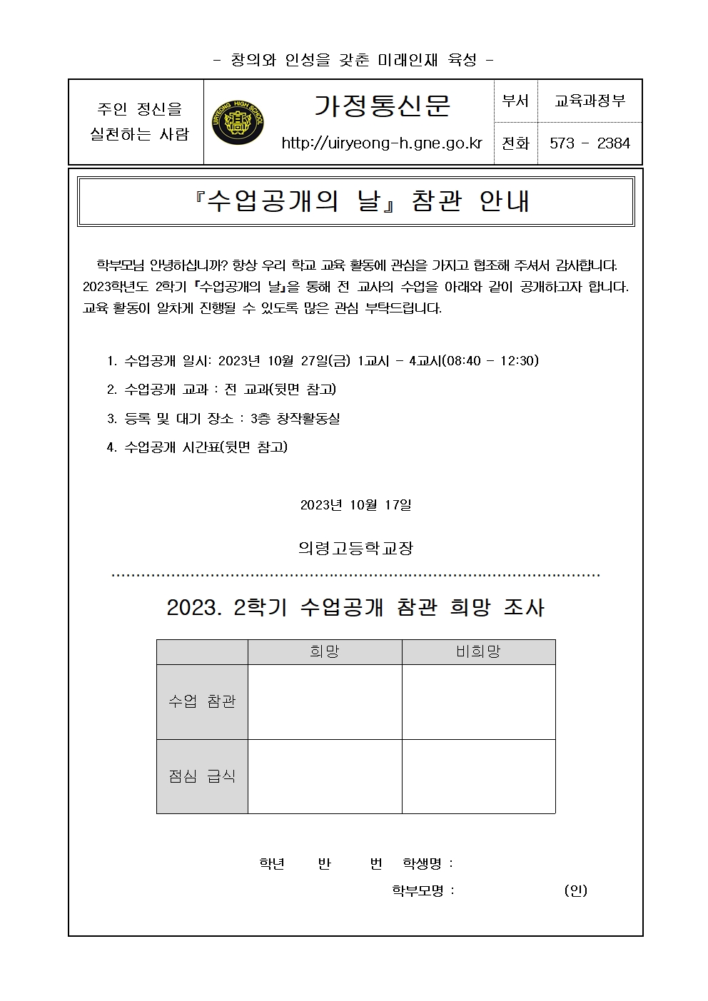 개인형 이동장치 관련 주의사항 안내 가정통신문