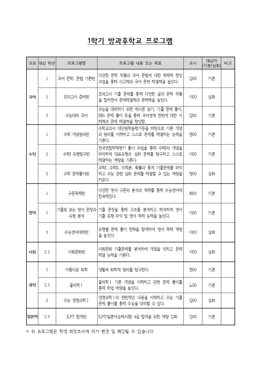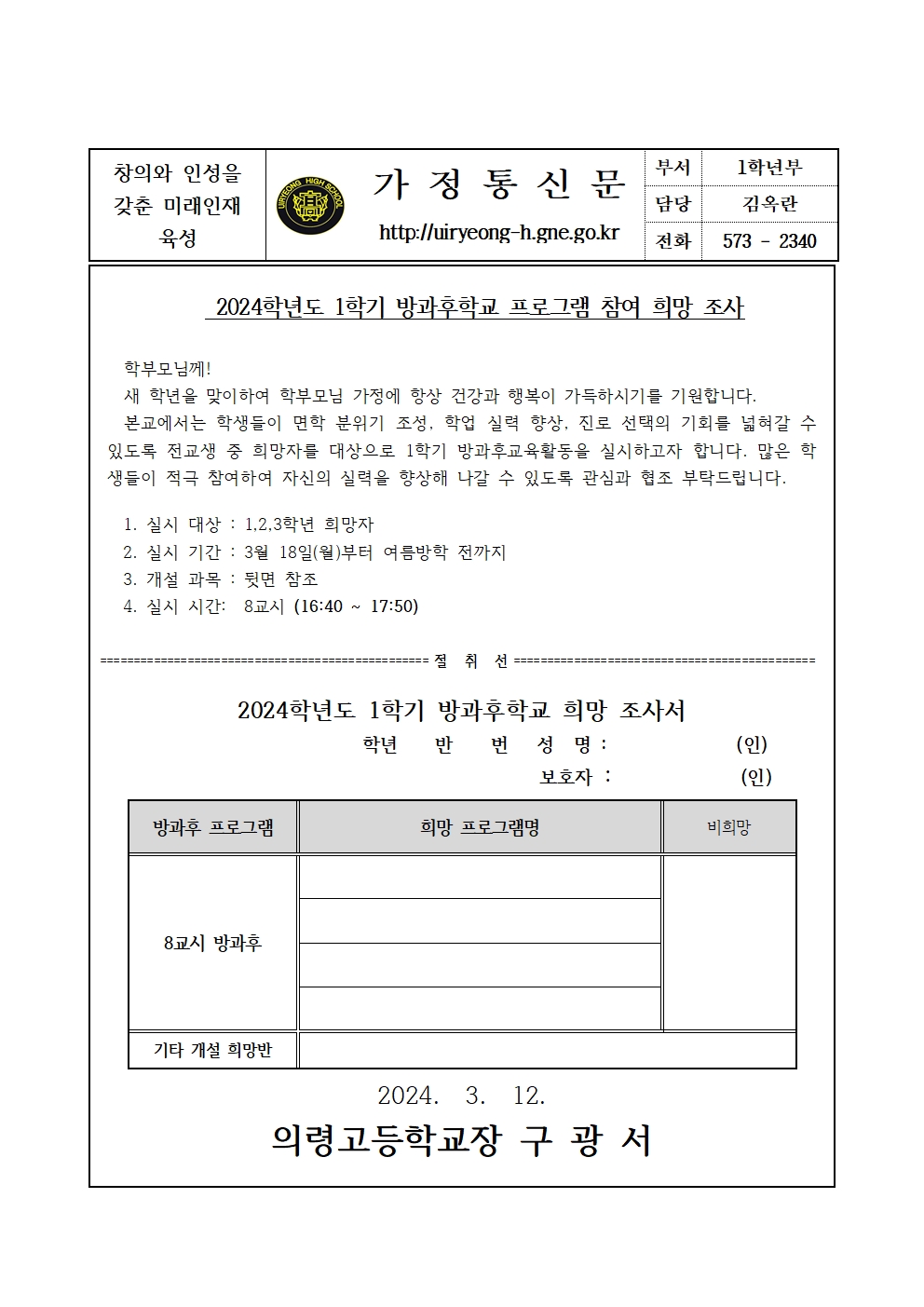 2024학년도 1학기 방과후학교 프로그램 참여 희망 조사