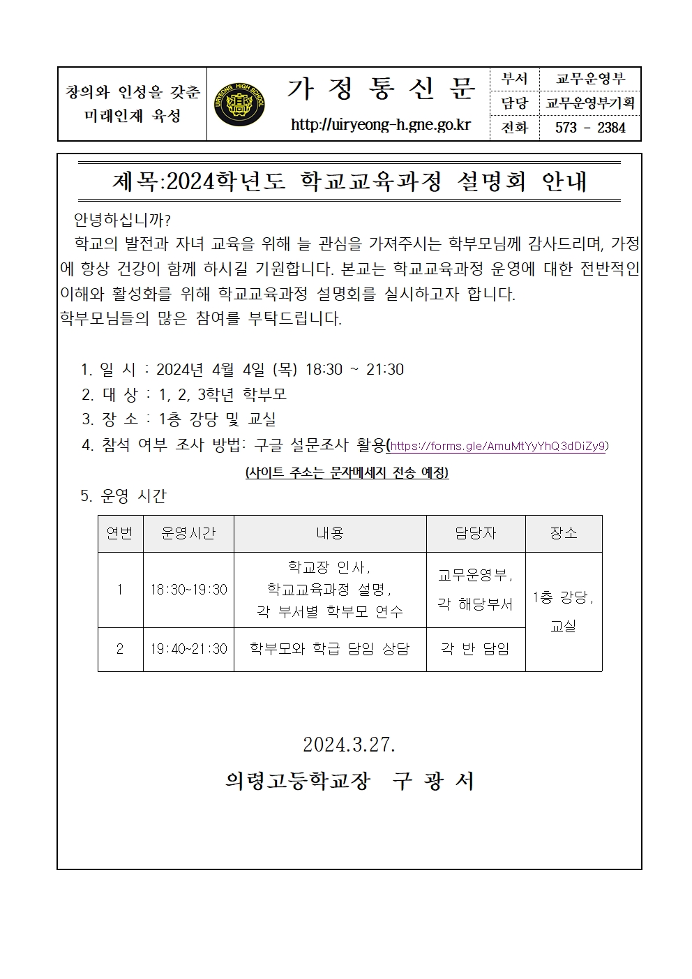 24학년도 학교교육과정설명회
