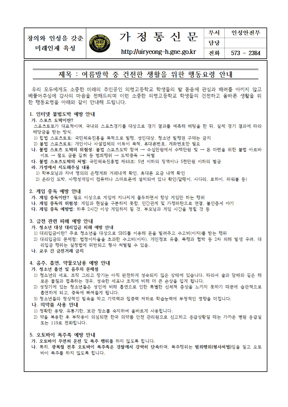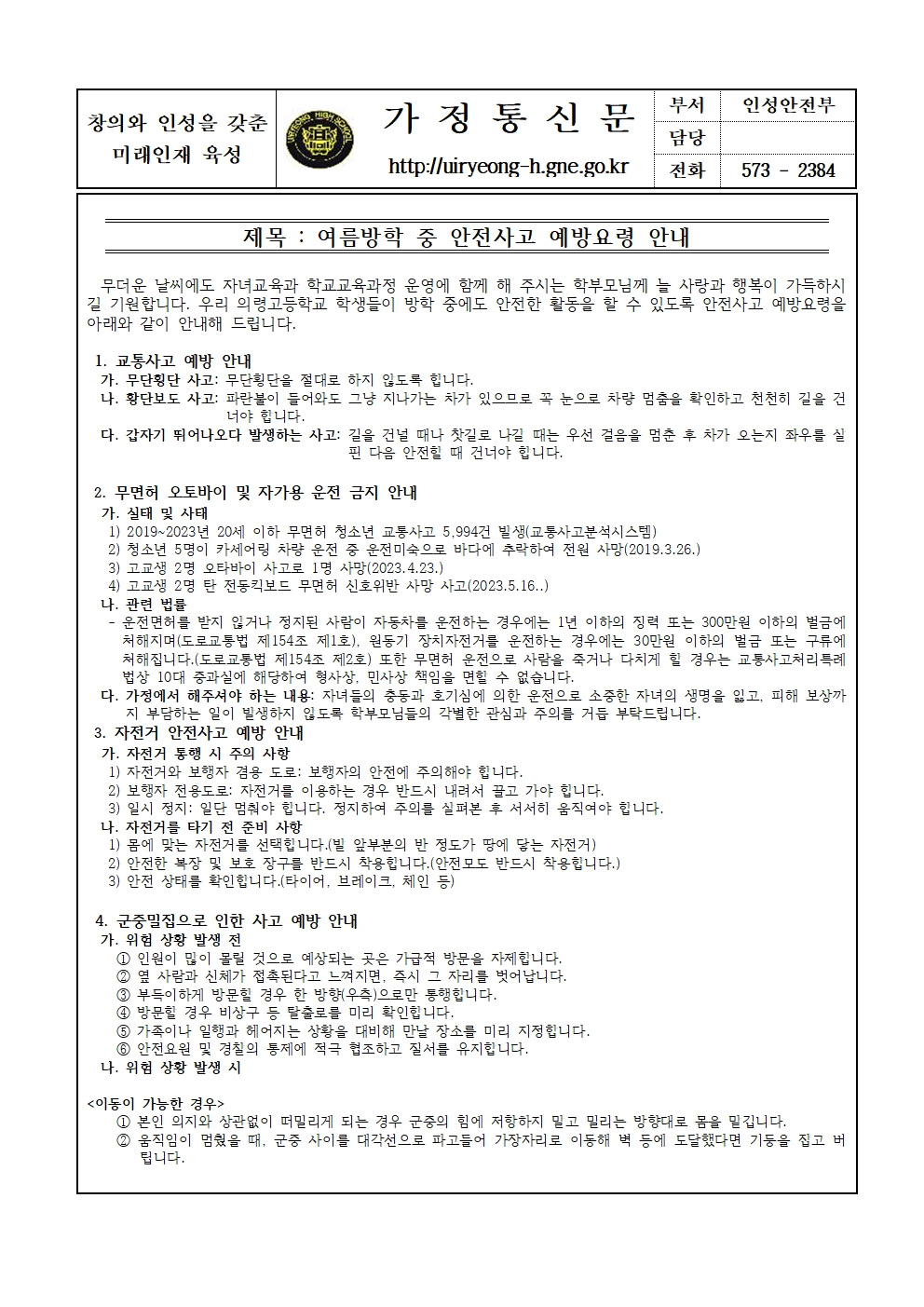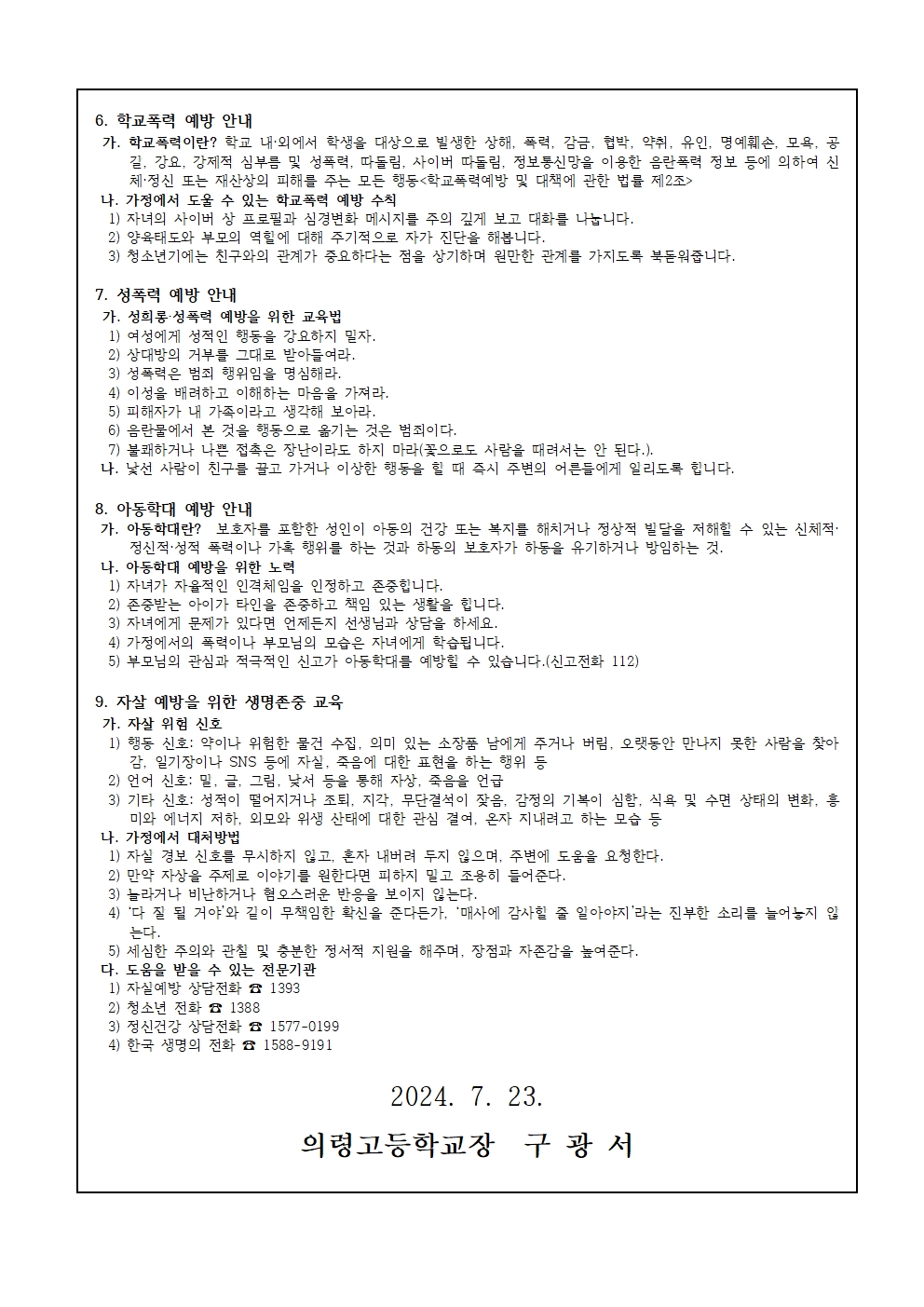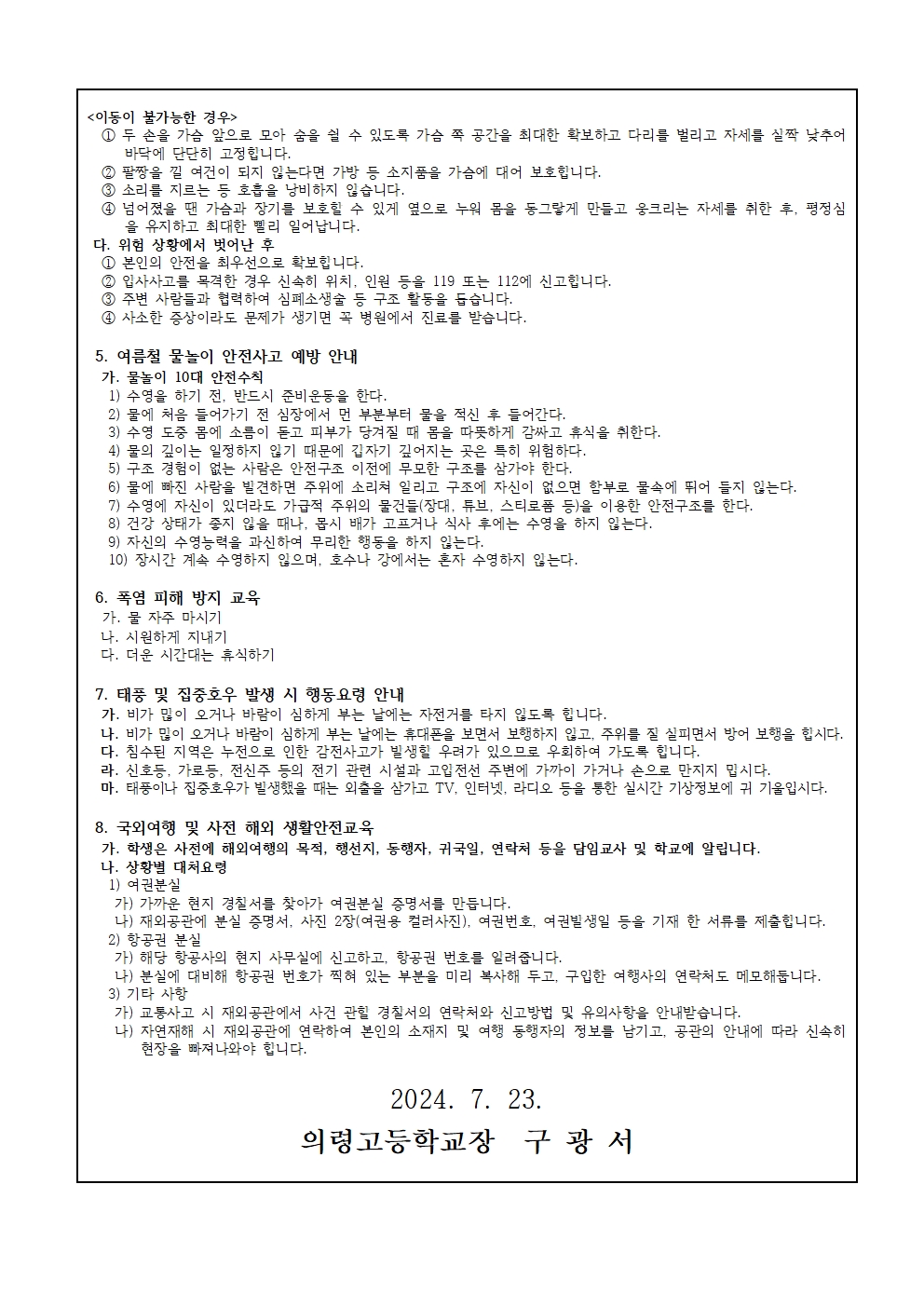 2024. 다안전해(믈놀이 안전) 경남교육 소식지 7월호 가정통신문