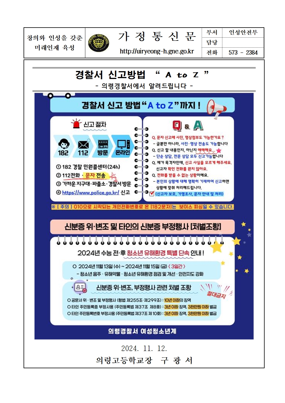 2024. 수능 전·후 청소년 유해환경 특별단속 안내